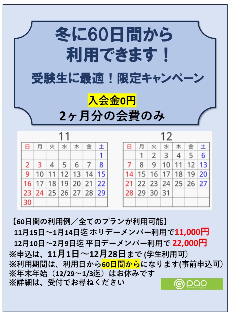 冬季限定60日間利用キャンペーン