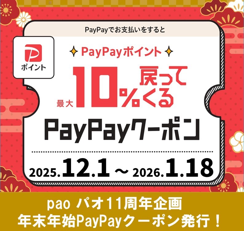 2025年12月1日(月)~2026年1月18日(日)までの期間限定で、PayPayでのお支払いにより 最大10%ポイント還元 が受けられるお得なキャンペーンを開催しています。